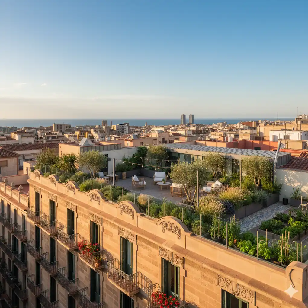 - La Solución Creativa (Uso Óptimo): En lugar de verla como un tejado, se ve como un «solar en las alturas». Se invierte en adecuarla, se instala césped artificial, una zona de barbacoa y mobiliario de exterior. Se convierte en un amenity de lujo para la comunidad.